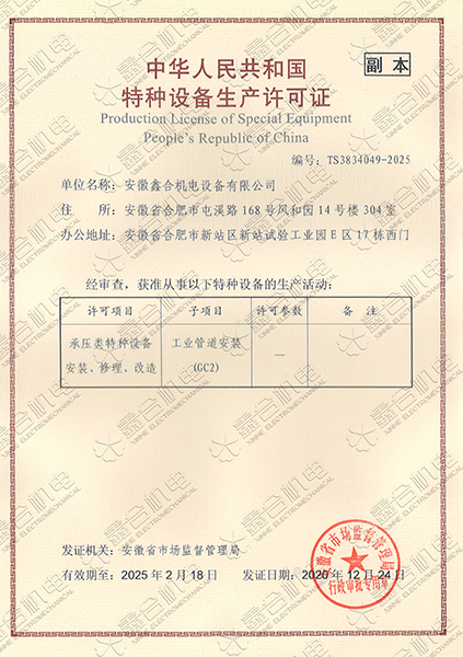 目前我公司具有建筑機電安裝工程專業(yè)承包一級資質、總承包二級、GC2壓力管道設計、施工資質。現有高級工程師5名、高級技師55名、工程師22名、助工25名、技術員22名、各類專業(yè)技師50多名,強大的技術力量及精良的施工隊伍,為客戶提供全方位服務。 公司本著“一切為了用戶”的經營理念,“以品質求生存、以誠信贏市場、以管理促發(fā)展”為要求,努力為廣大客戶提供專業(yè),優(yōu)質、高效的服務。